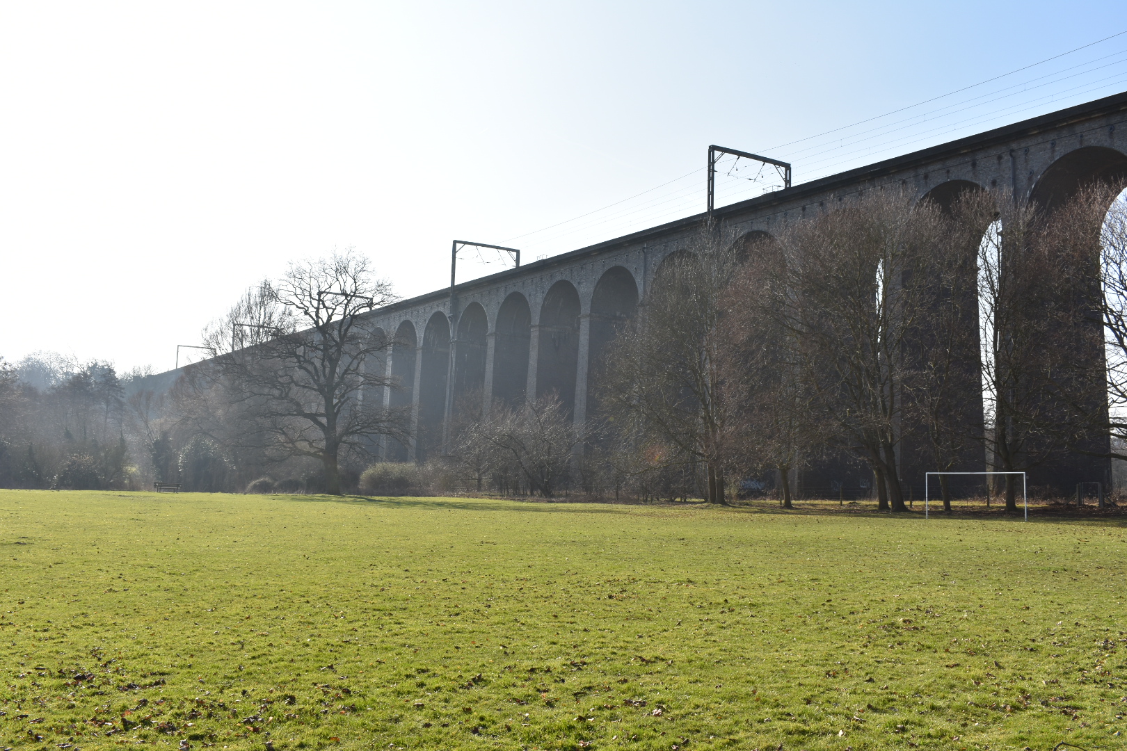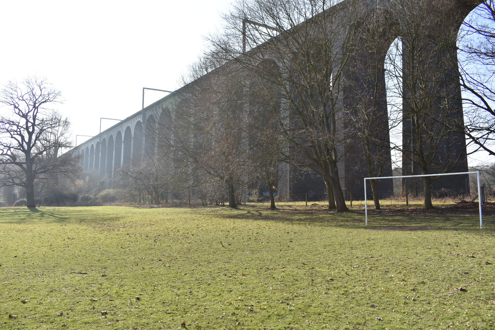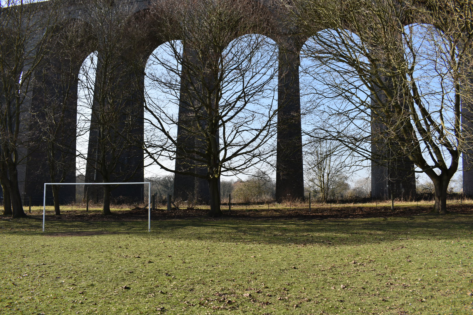 I particularly like the first image, as initially the viaduct leads your eyes away to the left of the photo, but then they come back around again following the trees to the goalposts positioned to the right of the shot.